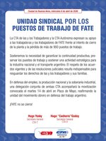 UNIDAD SINDICAL POR LOS PUESTOS DE TRABAJO EN FATE