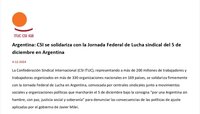 CSI se solidariza con la Jornada Federal de Lucha sindical