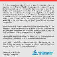 Asoc. Actores y Actrices - Denuncia actitud de las cámaras