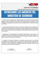 RECHAZAMOS LAS AMENAZAS DEL MINISTERIO DE SEGURIDAD