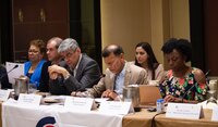 También están presentes Hassan Yussuff, Presidente CSA, María Helena André, Directora ACTRAV OIT y Víctor Báez, Secretario General adjunto CSI.