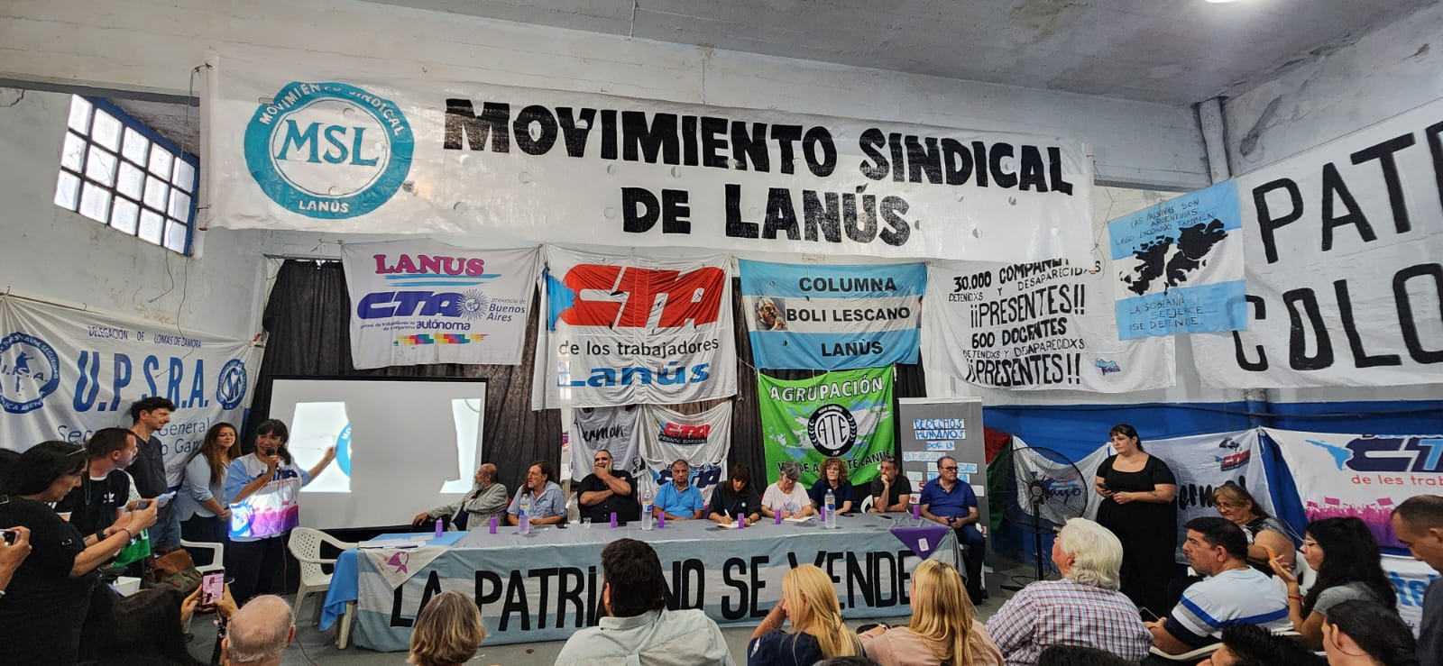 En el plenario del Movimiento Sindical de Lanús estuvieron presentes las dos CTA y gremios de la CGT. Contó con la presencia de Roberto Baradel (secretario de Relaciones Internacionales de la CTA-T), Rodrigo Borrás (subsecretario de RRII), Andrés Larisgoitía, director de la mencionada secretaría, y Oscar de Isasi (secretario general de la CTA Autónoma de la Provincia de Buenos Aires). Por la CTA Lanús participaron Mara Corvalán (secretaria general de la CTA Lanús), Natalia Salomoni (secretaria general de SUTEBA Lanús B) y compañeras de la CTA Lanús; el dirigente de la Mesa Nacional CTA-T y del Frente Transversal Nacional y Popular, Edgardo Depetri ; representantes del Frente Barrial de la CTA, entre otras organizaciones. También estuvo presente Carmen Arias, Madre de Plaza de Mayo.