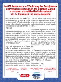 La CTA Autónoma y la CTA de las y los Trabajadores expresan su preocupación por la Flotilla Sumud y se suman a la solidaridad internacional con su tripulación y el pueblo palestino.