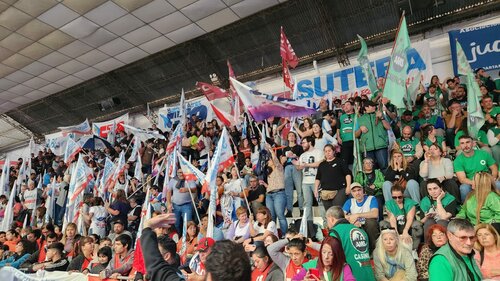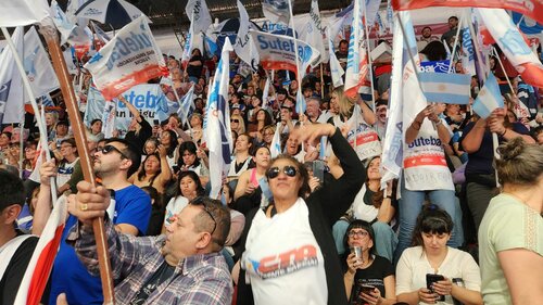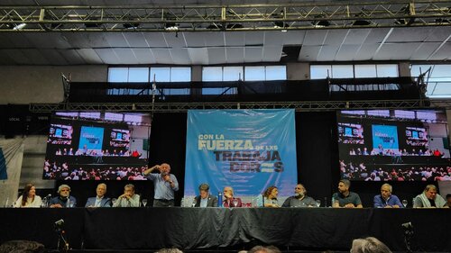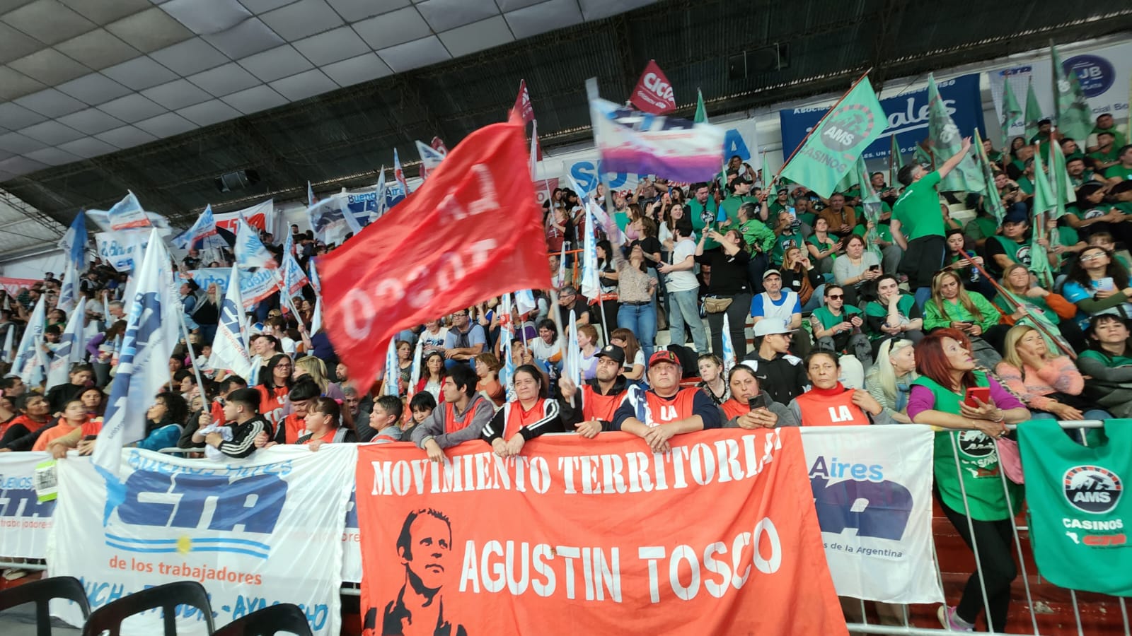 Acto de la CTA-T, junto a la CTA-A y la CGT en el Estadio Atenas de La Plata