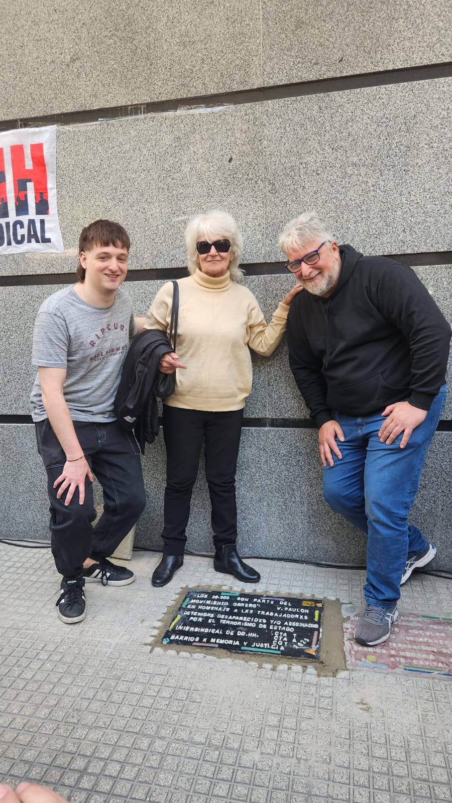 La Baldosa por la Memoria, que lleva la firma de las tres centrales que integran la Intersindical de DDHH, y de Barrios x Memoria y Justicia, tiene una frase de nuestro compañero Victorio Paulon, histórico dirigente sindical metalúrgico de la UOM de Villa Constitución, quien fuera Secretario de Derechos Humanos de la CTA-T: "Lxs 30.000 son parte del movimiento obrero".