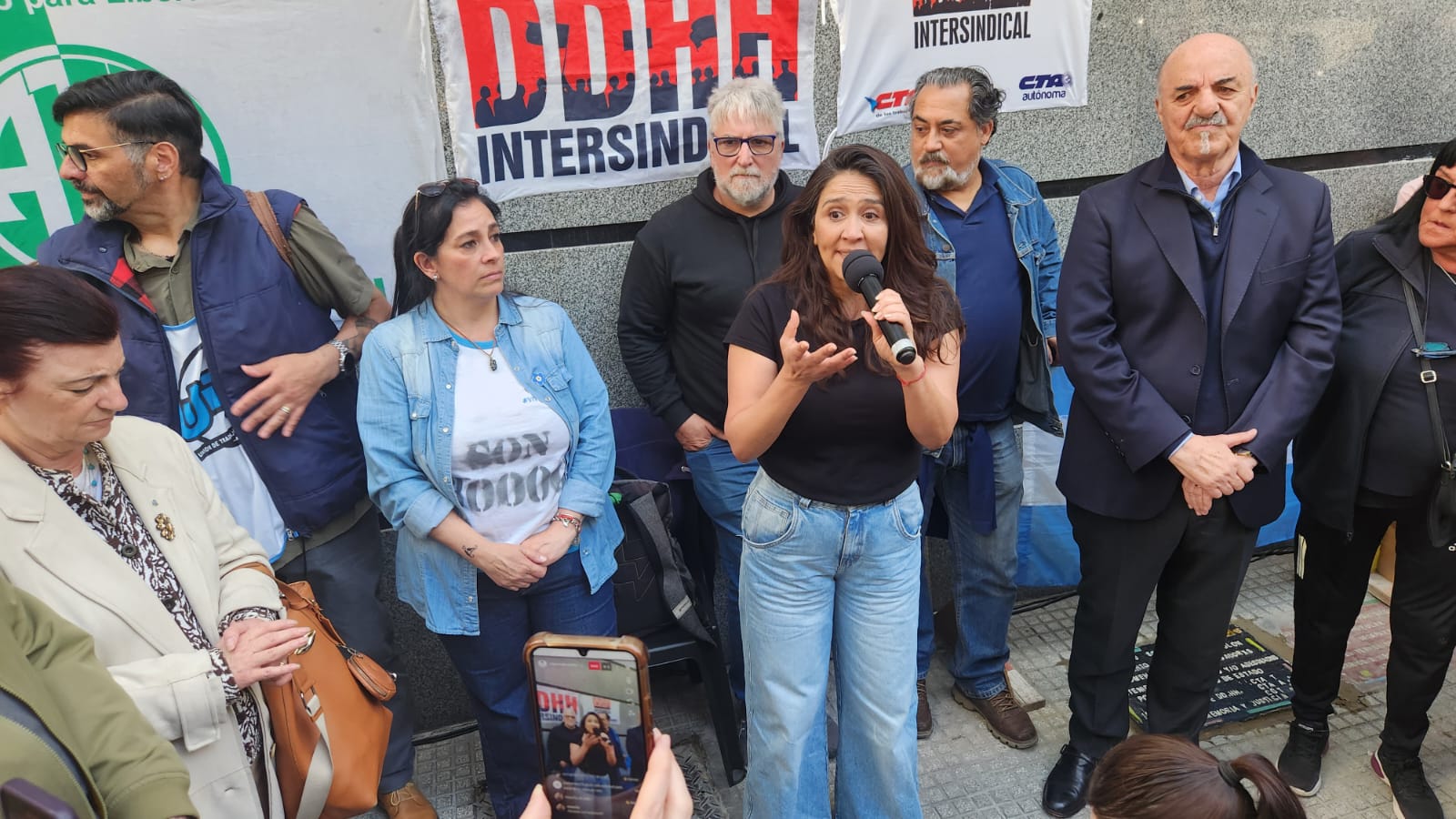 Mientras Agustina Panissa hablaba, el secretario general adjunto de la CTA-T y titular de ATE Capital, Daniel Catalano, se encontraba adentro del Ministerio de Trabajo donde el Gobierno nacional, a través de la ministra Sandra Pettovello, decidió abrir un sumario policial contra nuestro compañero Catalano, y señaló en un comunicado a otrxs referentes, entre ellxs a la compañera Panissa, por haber colocado una baldosa en homenaje a las y los detenidos desaparecidos.