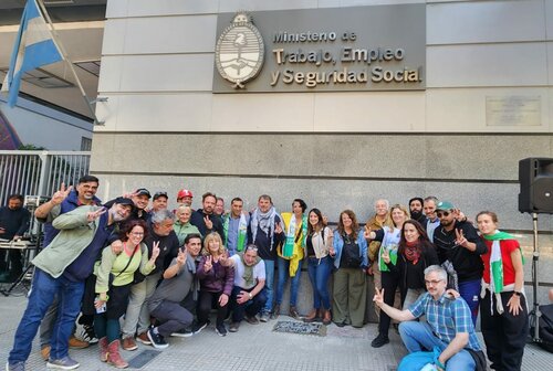 Santiago Ponce agradeció la iniciativa y manifestó: “ Gracias compañerxs por bancarnos en este momento tan difícil que estamos viviendo los trabajadores de esta casa, momento de persecución, desguace, de despidos”. Y se refirió también a la persecución contra Cristina Fernández de Kirchner.