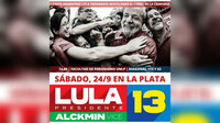 El Comité Argentino Lula Presidente invita a su cierre de campaña el próximo sábado 24 de septiembre a partir de las 14 horas en la Facultad de Periodismo y Comunicación Social de la Universidad Nacional de La Plata, sita en Diagonal 113 y 63 de la capital bonaerense.
