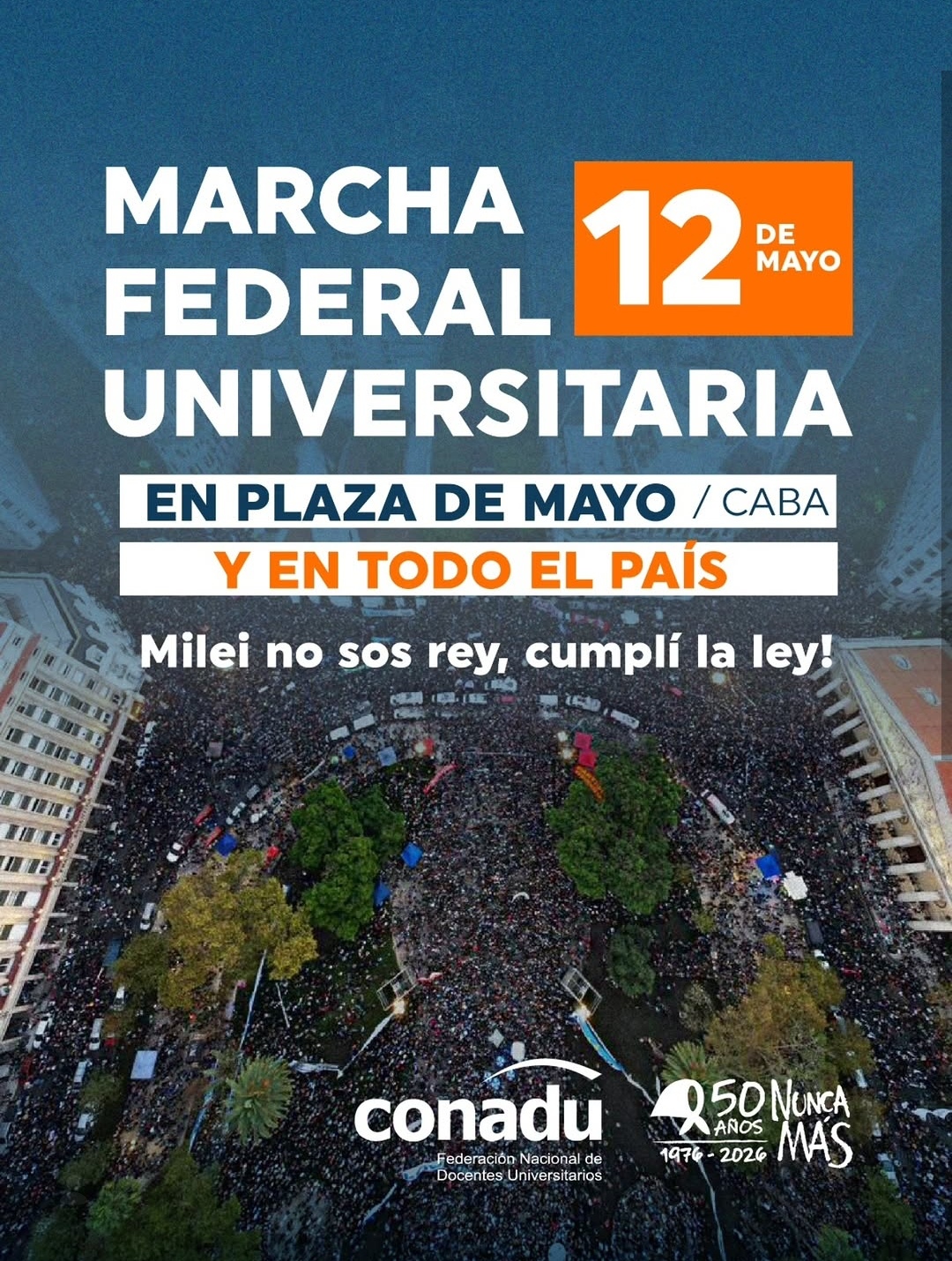 Este 12 de mayo la universidad pública se moviliza en todo el país para exigirle a Milei que cumpla la Ley de Financiamiento Universitario.