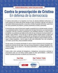CONTRA LA PROSCRIPCIÓN DE CRISTINA - EN DEFENSA DE LA DEMOCRACIA