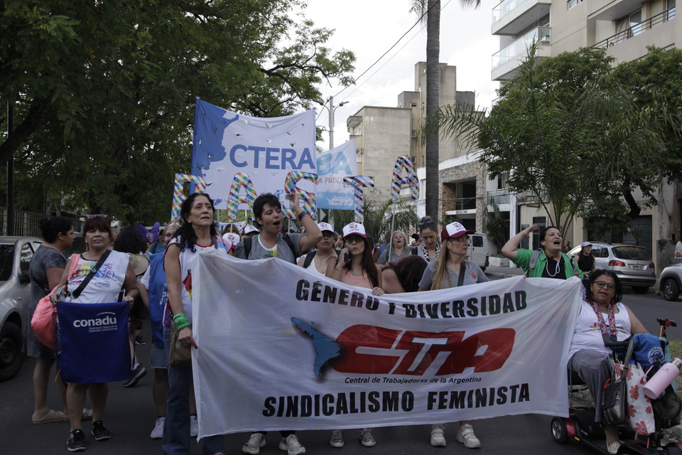 Ya entrada la tarde, la multitudinaria columna sindical en unidad, junto a fuerzas políticas del campo nacional y popular, formó parte de la histórica marcha del 38° Encuentro Plurinacional, que recorrió las calles de Corrientes junto a más de 60 mil mujeres y diversidades de todo el país. Con banderas, bombos, delegaciones federales y la fuerza organizada del movimiento obrero, la columna sindical de las y lxs trabajadores volvió a demostrar que la unidad es la única forma de enfrentar la ofensiva reaccionaria.