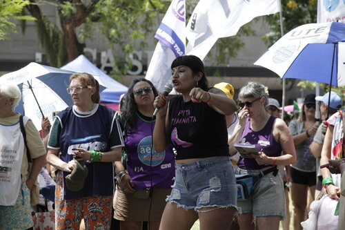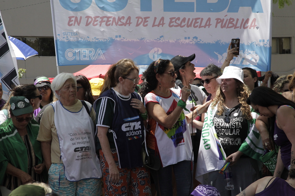 A continuación, con el Bloque Sindical Feminista realizamos la Asamblea Trabajadora, en la que compañeras de nuestra CTA de les Trabajadores, la CTA Autónoma, la CGT y la UTEP tomamos la palabra para exponer la gravedad de la situación que vivimos los sectores populares, denunciando que el intento de imponer una reforma laboral regresiva forma parte de un proyecto político más amplio de disciplinamiento social, ajuste y saqueo, que profundiza la precarización, destruye los mecanismos de representación colectiva y busca devolver a lxs trabajadorxs a un escenario de desprotección propio de las peores etapas de nuestra historia.