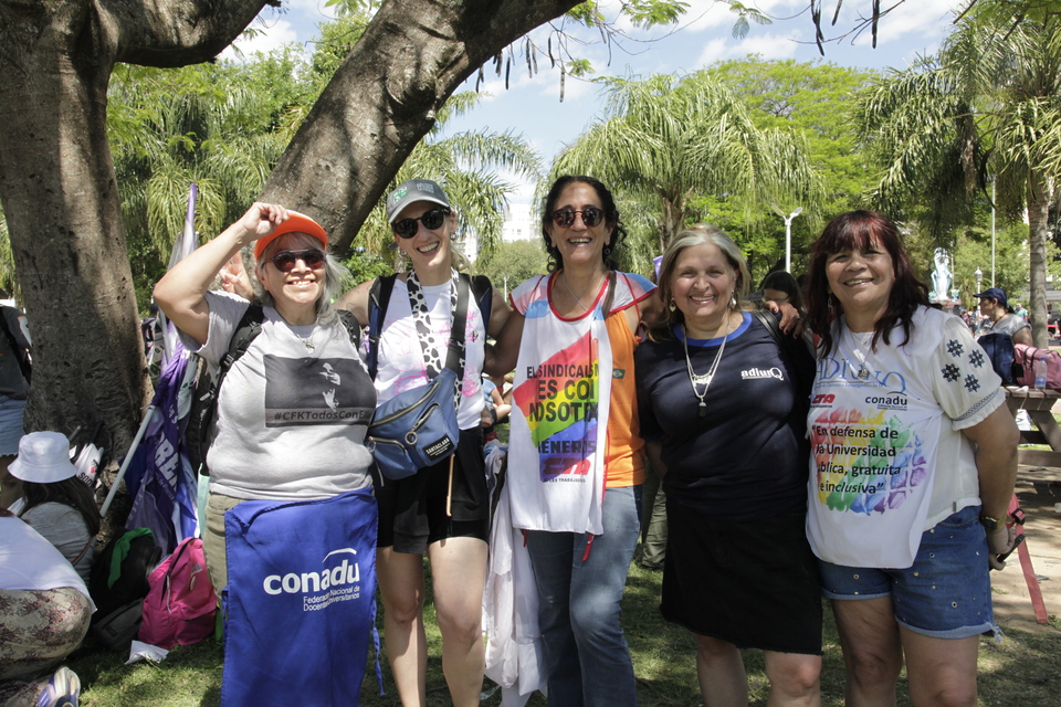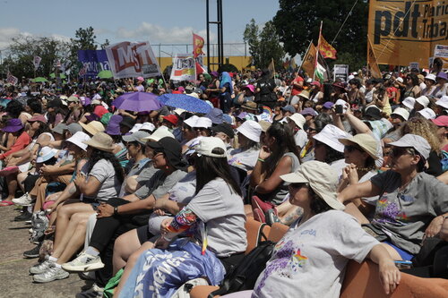 En la segunda jornada, entre talleres, nos sumamos a una acción colectiva en la Costanera para reclamar por la libertad de Cristina Fernández de Kirchner y escuchar su mensaje, en el que planteó con claridad una clave que debería ser ineludible en cualquier análisis del momento político en que nos encontramos: “Que yo esté privada de mi libertad y proscripta es la metáfora perfecta y disciplinadora de una Argentina a la que le están liquidando sus posibilidades de desarrollo y crecimiento económico”. La condena a Cristina, así como la privación ilegítima de la libertad de Milagro Sala, que ya lleva casi 10 años presa y hostigada por el Poder Judicial corrupto, oligárquico, clasista y racista que repudiamos, es un signo de la impunidad con la que el poder económico viene degradando la democracia argentina desde hace mucho tiempo.
