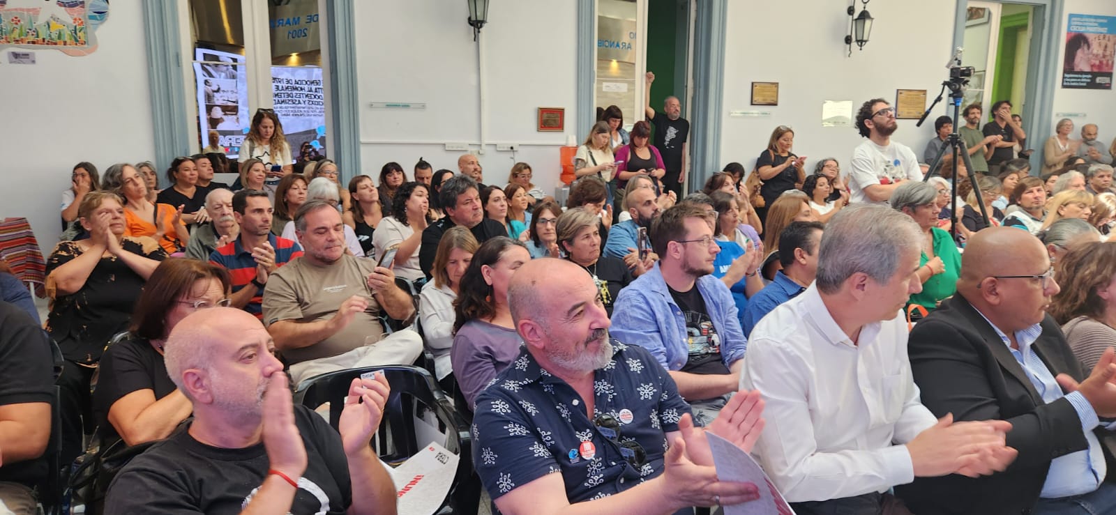 Luego, se proyectó un video en homenaje a lxs 880 docentes detenidxs, desaparecidxs y asesinadxs por la dictadura cívico militar.