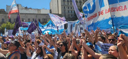 Hoy docentes de todo el país desde La Quiaca hasta Tierra del Fuego paramos para decirle: No al desfinanciamiento educativo, Sí a la defensa integral de la educación pública. En cada una de las provincias se realizan actos, marchas, clases públicas y en la Ciudad de Buenos Aires realizamos una gran marcha concentrándonos en el Cabildo para marchar hacia el Congreso de la Nación.