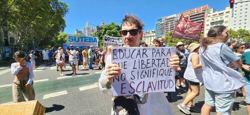 El paro y la movilización tienen como eje el reclamo por las políticas de desfinanciamiento educativo, el rechazo a la ley de libertad educativa, la restitución del FONID y el pedido de aumento salarial.