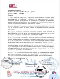 CUT Chile envió una carta de solidaridad a lxs trabajadorxs de Argentina