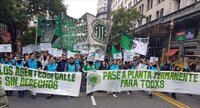 Por último, convocó a todos los gremios a realizar un paro nacional para “cambiar las condiciones de nuestro pueblo, porque no alcanza con decir que tenemos que ser pacientes y no alcanza con llegar al 27 de octubre, porque el hambre no espera”, concluyó ante una multitud.