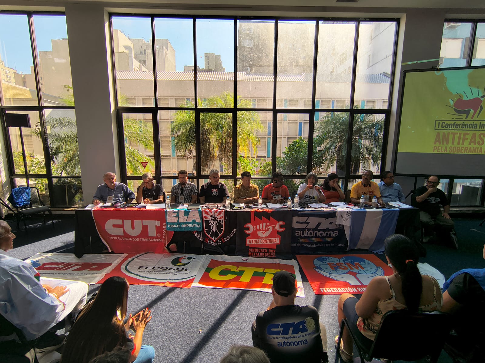 Reunidos en Porto Alegre - ciudad símbolo de las luchas internacionales, con importantes tradiciones y aspiraciones democráticas - miles de activistas de más de cuarenta países de los cinco continentes celebramos nuestra unidad en la diversidad, buscando avanzar en la organización de la resistencia y la lucha contra las diversas formas de fascismo, la extrema derecha y el imperialismo en su fase más agresiva. En representación de la CTA participaron Hugo Yasky, Roberto Baradel y Andrés Larisgoitia, quienes formaron parte de este encuentro junto a dirigentes históricos, académicos y referentes de organizaciones sociales de la región.
