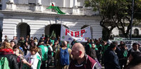 En el marco de la jornada nacional de lucha del sector nuclear, en conjunto con otros sindicatos del área nos movilizamos a las puertas de la Comisión Nacional de Energía Atómica. Los reclamos incluyeron el freno a la suspensión de la cuarta central con Planta Industria de Agua Pesada (PIAP), freno a la privatización de DIOXITEK, la finalización de los despidos y el desarme de la actividad nuclear en la Argentina, entre otros reclamos.