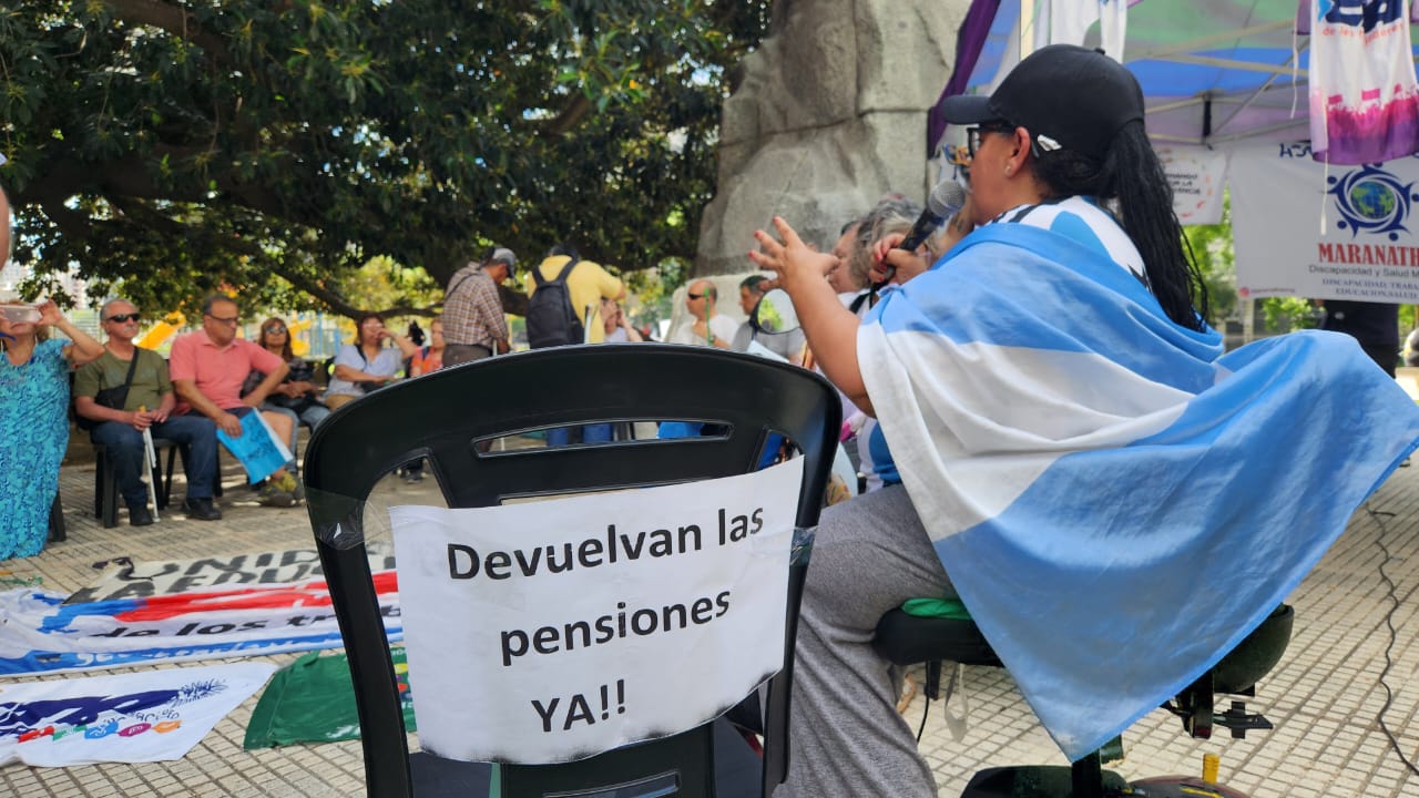 “Nuestra prioridad hoy es la devolución de las más de 120.000 pensiones que fueron dadas de baja por el Gobierno Nacional, de forma muy injusta y discriminadora”, manifestó, con una bandera argentina sobre sus hombros, Remigia Cáceres, secretaria de Discapacidad de la CTA.