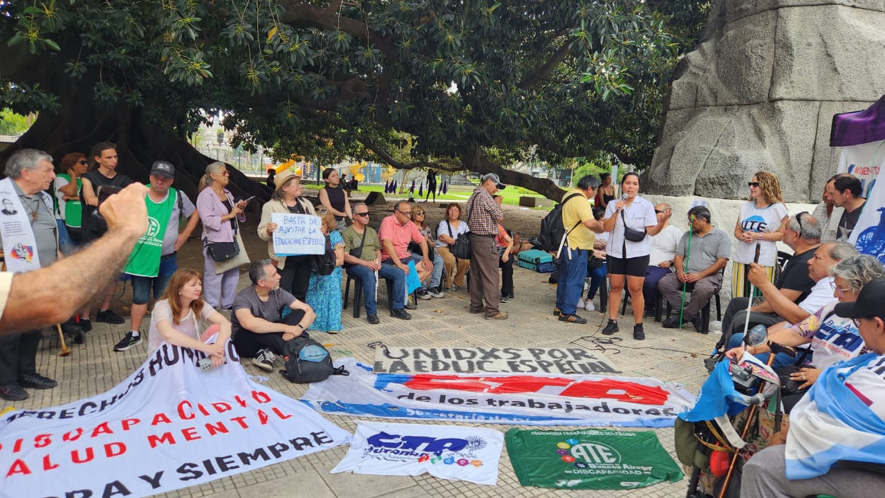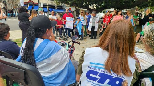 En la Plaza Mariano Moreno, a metros de la Agencia Nacional de Discapacidad en Hipólito Yrigoyen 1447, las organizaciones convocantes realizaron una radio abierta de la que participaron también docentes de Educación Especial, referentes sindicales de ambas CTA, transportistas, trabajadoras del Hospital Bonaparte, jubiladxs y miembrxs de la Mesa Ecuménica y de Curas en Opción por lxs Pobres. También se manifestaron frente a la ANDIS, donde hubo apoyo de lxs trabajadorxs de pisos superiores, mientras que en la puerta de ingreso, bajaron las persianas.