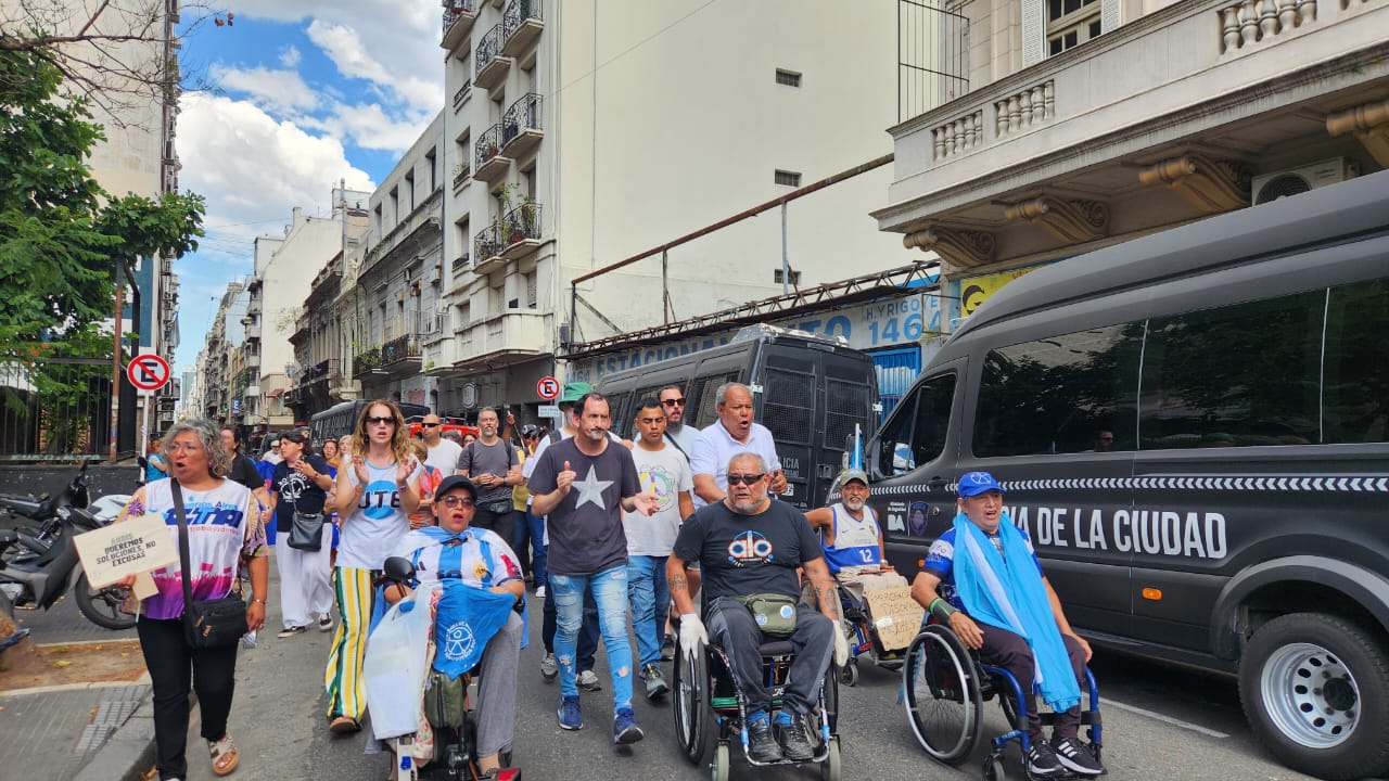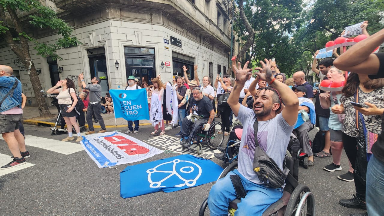En el Día Internacional de los Derechos de las Personas con Discapacidad, y tal como vienen haciéndolo todos los miércoles, organizaciones sociales, sindicales, familias, trabajadorxs y personas con discapacidad marcharon frente a la ANDIS para reclamar la devolución de todas las pensiones que se dieron de baja y el cumplimiento efectivo de la Ley de Emergencia. Luego, se dirigieron a San José 1111 para brindar su apoyo a la ex presidenta injustamente detenida.