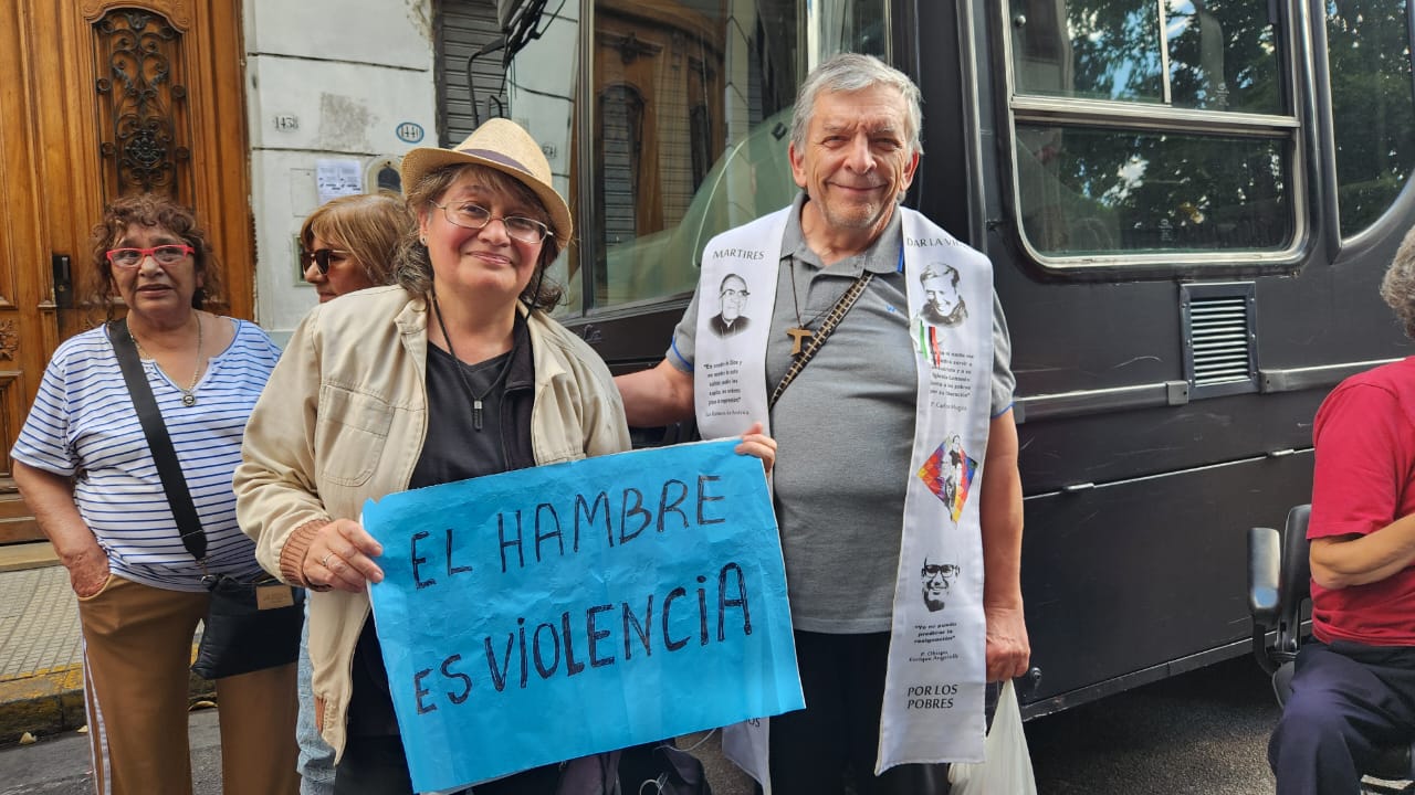 El padre Rodolfo Viano, cura franciscano en Opción por las y los Pobres e integrante de la Mesa Ecuménica, tenía puesta una estola con la imagen del padre Carlos Mugica. Mirando a los ojos a lxs compañerxs de las organizaciones de personas con discapacidad, definió: “Me despiertan admiración. Me parece que les queda chica la palabra discapacidad. Ustedes no son discapacitados ni discapacitadas. Ustedes son personas muy capaces de mucho. De romper el individualismo campante de la sociedad en nuestro tiempo, no solamente en nuestro país sino en el mundo. Tienen esa capacidad especial del amor. El papa Francisco hablaba del ‘amor político’. Una conjunción medio rara, ¿no? Como decía acá un compañero, ‘la salida es política’. Claro. Y el amor es amor por el pueblo, por el bien común. Empezando por los menos reconocidos y reconocidas en su dignidad”.