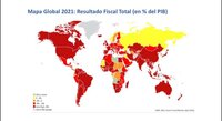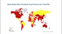 No hace falta que lo explique, los rojos, los más intensos los menos intensos tienen que ver con los países del mundo que tienen resultado fiscal primario. ¿Qué es primario? Antes de pagar la deuda, antes de pagar los servicios financieros de la deuda tienen ese resultado. Vamos con el resultado fiscal definitivo después de pagar deuda por favor que son números también… columna. Ahí lo tenemos, otra vez decimotercero.