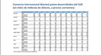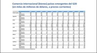 Bueno, acá vamos al superávit comercial de los países desarrollados y el superávit comercial de los países desarrollados, el déficit más grande, por supuesto lo tiene Estados Unidos. Que tiene de déficit comercial, o sea entre lo que exporta y lo que importa, un billón setenta… ¿entendieron? Un billón, con b, un billón setenta y nueve mil millones de dólares de déficit comercial. Lo mismo… bueno y así… pasamos al segundo que son los emergentes, ahí estamos nosotros.