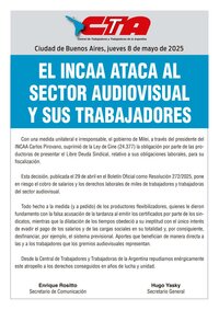 Esta decisión, publicada el 29 de abril en el Boletín Oficial como Resolución 272/2025, pone en riesgo el cobro de salarios y los derechos laborales de miles de trabajadores y trabajadoras del sector audiovisual.