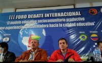 El Secretario de Relaciones Internacionales de CTERA, Eduardo Pereyra, participó del III Foro debate internacional "El modelo educativo sociocomunitario productivo como experiencia transformadora hacia la calidad educativa", organizado por la Confederación Nacional de Maestro de Educación Rural de Bolivia -CONMERB- y la Confederación de Trabajadores de Educación Urbana de Bolivia -CTEUB-, en coordinación con el Ministerio de Educación del Estado Plurinacional de Bolivia; los cuales se vienen realizando desde hace dos años.