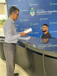 Dr.Lourenço Ferreira do Prado, Secretário De Relações Internacionais da UGT-BRASIL, protocolando o manifesto da UGT-BRASIL na Embaixada da Argentina em Brasilia-DF- Documento Oficial.