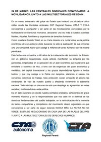 Entre Ríos - Las centrales sindicales convocamos a movilizarnos este 24 junto a las multisectoriales de DDHH