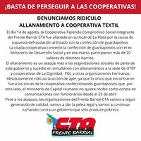 Frente Barrial - Denunciamos ridículo allanamiento a cooperativa textil