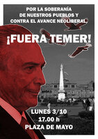 Lo hemos denunciado en reiteradas oportunidades y lo seguiremos haciendo: Temer está ocupando la presidencia de Brasil por los intereses corporativos de 61 senadores, funcionales a los medios masivos de comunicación y al interés de algunos sectores del poder judicial, y desconociendo la voluntad de 54 millones de brasileros. Un juicio político sin crimen, es un golpe de estado parlamentario.