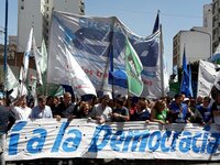 Las calles del centro de la ciudad de Mar del Plata, donde hace 11 años se enterró definitivamente al ALCA, este viernes 4 nuevamente se encontraron con una multitudinaria marcha en defensa de la Democracia y contra el Neoliberalismo.