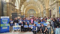 “Planteamos la anulación del DNU, no solo las CTAs, sino también con más de 200 organizaciones políticas, sociales y sindicales. Vemos una respuesta formidable aquí, en la Estación Constitución, del hombre y la mujer que todos los días está padeciendo las políticas de este gobierno. A medida que pasa el tiempo hay más eco en el hombre y la mujer de a pie. Creo que en la Argentina, en las últimas elecciones, la mayoría de nuestro pueblo votó por vivir mejor, haya votado a quien haya votado. Nadie votó por perder el empleo, por no llegar a fin de mes, y como el gobierno de Milei está utilizando ese capital electoral para perjudicar a las mayorías, hace más o menos un mes que se está notando la pérdida de consenso del gobierno. Se nota en las encuestas y porque cada vez hay más gente que firma contra las políticas de Milei, como es el caso del DNU”.