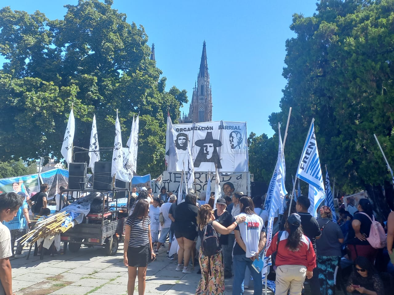 "Participamos con otras organizaciones que reclamamos por su liberación, de una caravana y una marcha que culminó en la Plaza Moreno, frente a la Catedral, donde en forma unitaria reclamamos su liberación, pedimos por el mejoramiento de su salud, ya que se encuentra internada, y lejos de sumarnos a la estigmatización que ya hace más de 10 años se hace de la Tupac Amaru y otras organizaciones sociales, marcamos que para la vuelta de un gobierno popular ese es el camino: organización popular que garantice vivienda, trabajo, salud, educación y esparcimiento para los pibes en las tan denostadas piletas. Vamos a seguir en esta lucha, por la libertad de Milagro y con ella la felicidad de nuestro pueblo, logrando los derechos que todos nos merecemos".