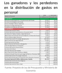 Mientras tanto, la enorme mayoría sufre recortes, entre los que se destacan la Secretaría de la Niñez, Adolescencia y Familia, con una diminución de una tercera parte de sus gastos en personal y la desaparición de los Institutos del Cáncer, del Agua, de Asuntos Indígenas.