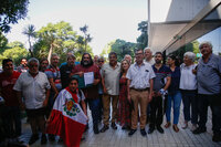 En ese marco, se hizo entrega de la misiva, que lleva la firma de Roberto Baradel, secretario de Relaciones Internacionales de esta CTA-T, de Adolfo Aguirre, secretario de Relaciones Internacionales de la CTA Autónoma, y Gerardo Martínez, secretario de Relaciones Internacionales de la Confederación General del Trabajo. El texto señala que las centrales argentinas, acompañadas por los peruanos y peruanas radicados en este país “expresan su profunda preocupación por la crítica situación del ESTADO DE DERECHO en el hermano país de Perú, se solidarizan y acompañan al pueblo peruano, agredido por el ilegítimo gobierno de Dina Boluarte”.
