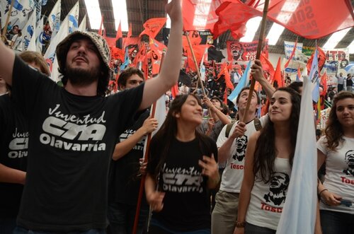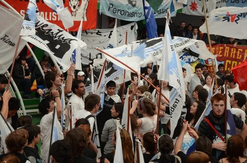 Acto seguido, Gustavo Alarcón del EDE dijo: "el desafío histórico que nos convoca es lograr la organización popular y la unidad de la juventud tomando el ejemplo de aquellos presidentes que en el año 2005, en el marco de la Cumbre de las Américas, dio por enterrada al ALCA y eso ha dado sus frutos. Y uno de esos frutos fue la creación de la UNASUR".
