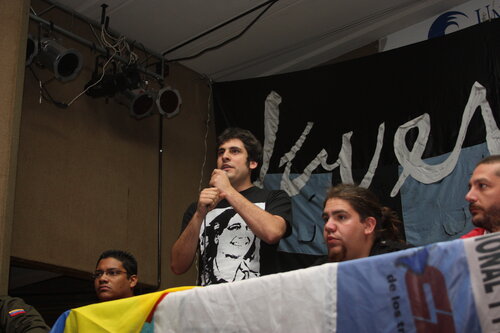 El panel fue coordinado por Eva Durá de la Juventud CTA y estuvo compuesto por: Homero Koncurat (Peronismo Militante), Juan M. Gómez (JP Descamisados), Gustavo Alarcón (EDE), Rander Peña (Director de Relaciones Internacionales del Ministerio de Poder Popular para la Juventud de Venezuela), Xoan Noya (Coordinador de Relaciones Internacionales de la Juventud del Partido Socialista Unido de Venezuela), Ariel Elger (FEDE), Andrés Coria (Frente Transversal) y Agustín Cetrángolo (H.I.J.OS).