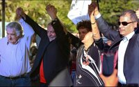Un emocionado “Lula” Da Silva aclamado por el público con cánticos y pancartas, presentó a Dilma Rousseff y a José Pepe Mujica para dar inicio al acto en la soleada y colmada plaza, a la que luego se sumó el ecuatoriano Rafael Correa.