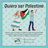 Impulsada por el Comité Argentino de Solidaridad con el Pueblo Palestino, La iniciativa "Yo quiero ser palestino" busca dar curso a una solicitud masiva de pedidos de nacionalidad de la nación de Medio Oriente, como una forma de denunciar la ocupación militar, genocida y de limpieza étnica que el pueblo palestino sufre hace 70 años.
