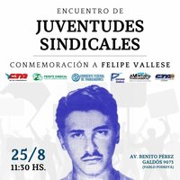 Durante un acto en el camping del SEIVARA - Sindicato de Empleadxs de la Industria del Vidrio - en Pablo Podestá, referentes sindicales de la CTA de les Trabajadorxs, la Juventud Trabajadora de la CTA-T, el Frente Sindical para el Modelo Nacional, la Corriente Federal de Trabajadorxs, la Juventud Sindical y la CTA Autónoma, conmemoraron al obrero metalúrgico, delegado sindical y militante de la Juventud Peronista, Felipe Vallese, secuestrado y desaparecido el 23 de agosto de 1962, a la edad de 22 años.