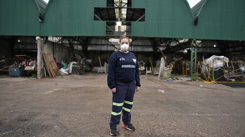 LA RECOLECCIÓN | Las cooperativas tienen su propio Sistema de Logística, integrado con camiones, algunos colectivos, camionetas. A los choferes y operarios se los lleva en un colectivo propio desde un punto en el barrio hasta otro punto de Logística provisorio del GCBA. Aquí se centralizan los camiones con los que se realiza la actividad y se les hace la desinfección periódicamente. También ahí se les entregan los elementos de protección a los compañeros para salir a cumplir sus tareas.
