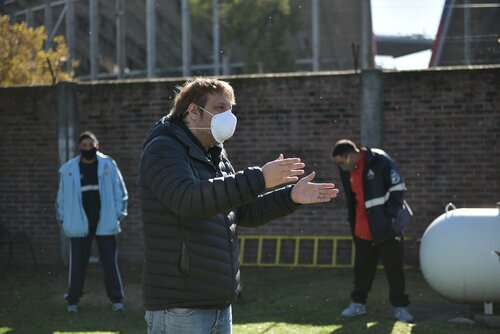 El camión tiene un chofer y un acompañante. Como indica el protocolo, llevan tapa-boca, máscara o anteojos, doble guante, ropa de trabajo, etc. A los compañeros que realizan esta actividad se les toma la temperatura cuando comienzan y cuando terminan la jornada.