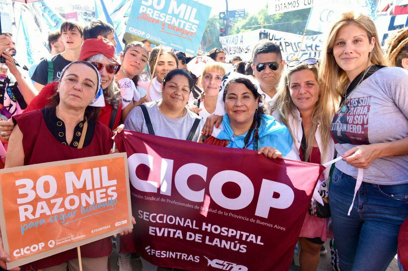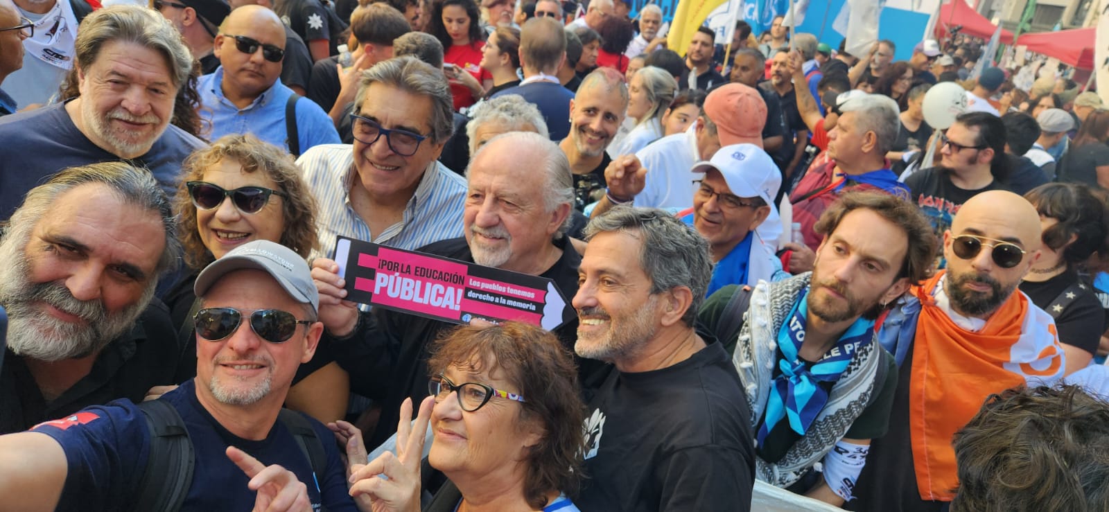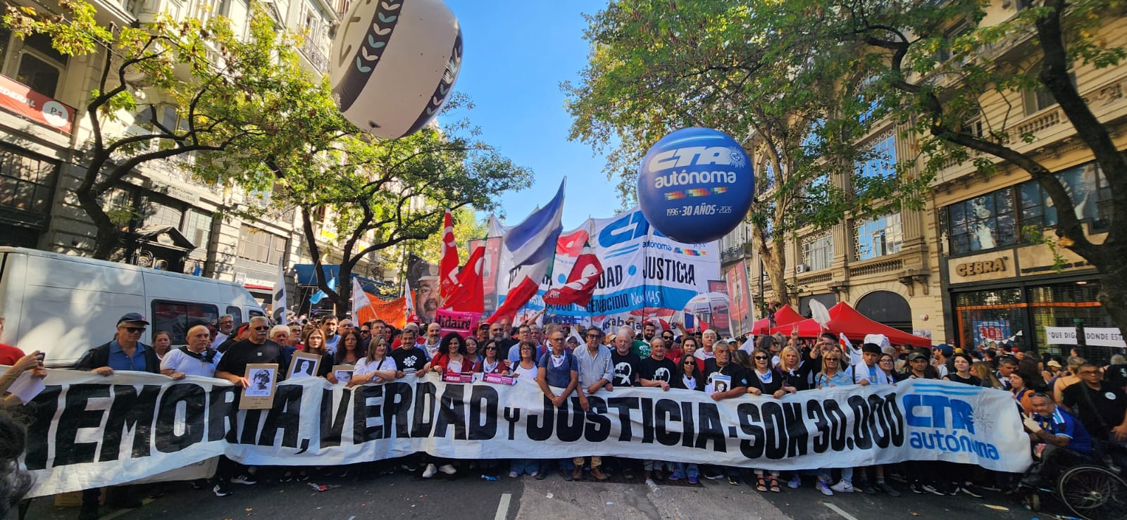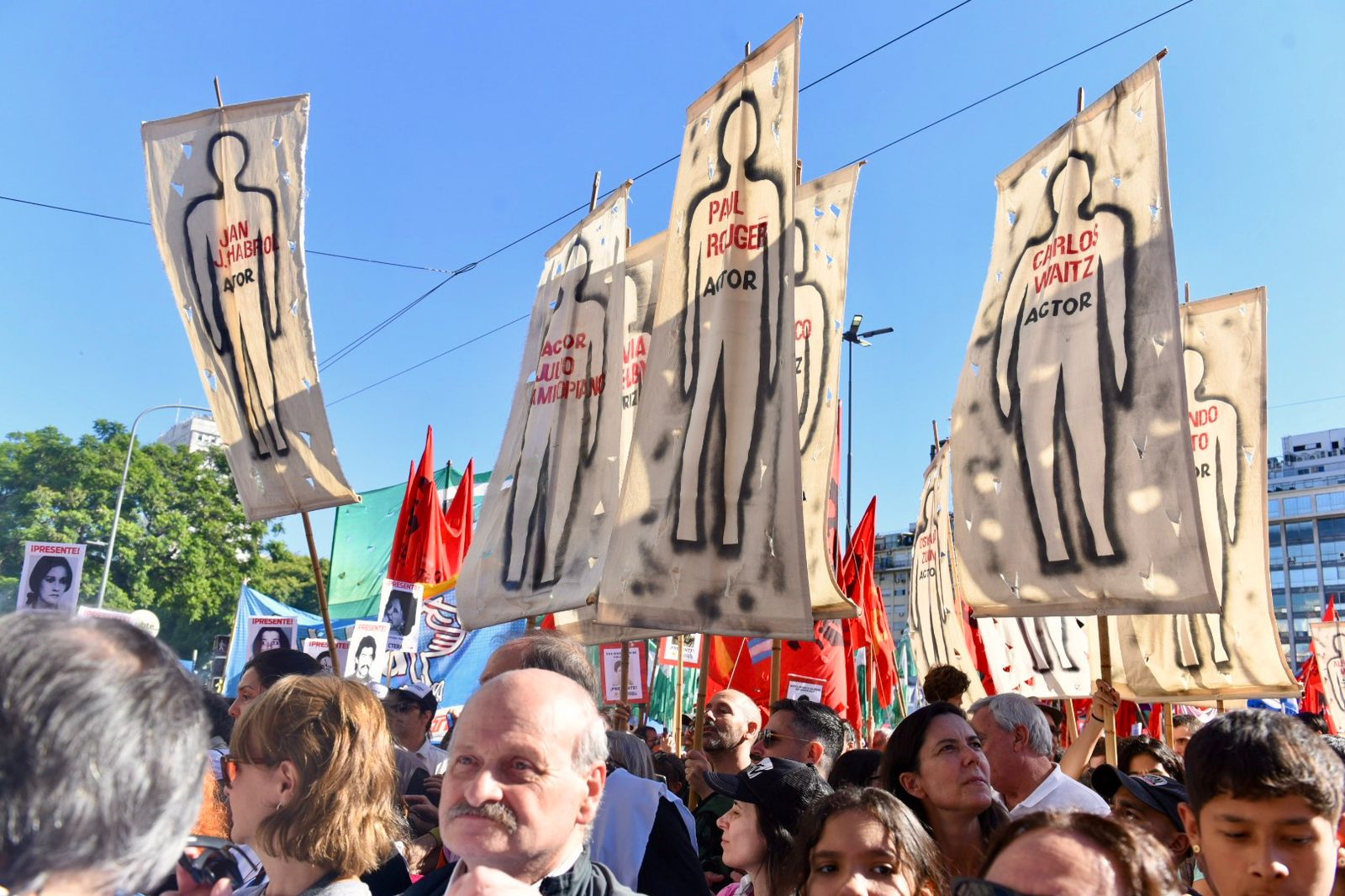 Roberto Baradel, secretario general del SUTEBA, CTA-T provincia de Buenos Aires y secretario de Relaciones Internacionales de la CTA-T Nacional, señaló: “Cientos de miles salimos a las calles hoy para decir Nunca Más. No queremos las políticas de odio, de crueldad de la dictadura militar, y tampoco las del gobierno de Milei”.