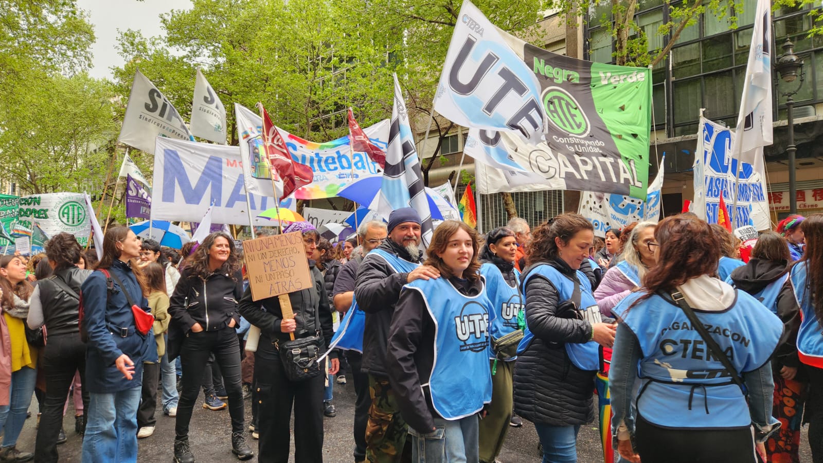 En tanto, María José "Monona" Gutiérrez, secretaria general de UTE, expresó: "Una vez más estamos bancando a nuestras pibas que fueron asesinadas. Hoy más que nunca Ni Una Menos, las organizaciones sociales, trabajadoras y trabajadores estamos acá porque tienen que dejar de matar a nuestras pibas. Tienen que permitir aplicar la ESI en nuestras escuelas. Por eso hay tantos maestros y maestras encolumnados junto a la UTE".
